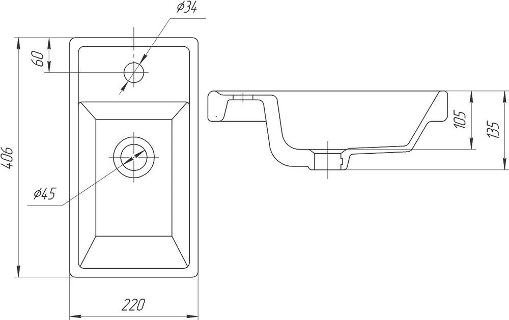 Донный клапан необходимо приобрести отдельно