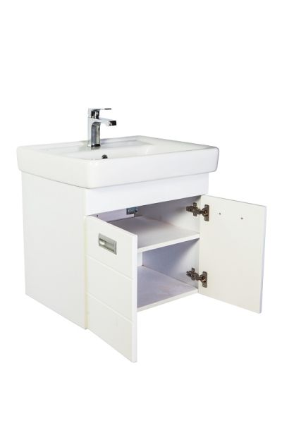 Подвесная тумба с раковиной. Предназначена для использования в ванных комнатах с повышенной влажностью. Дверки c механизмом доводчика, обеспечивающим плавное закрывание. Фасад МДФ в пленке - белый глянец, корпус ЛДСП - белый глянец. Раковина - фаянс. Фурнитура в цвете хром. В комплекте внутренняя полочка. Зеркальны шкаф для комплекта (арт. Ta-60ZSW) приобретается дополнительно.