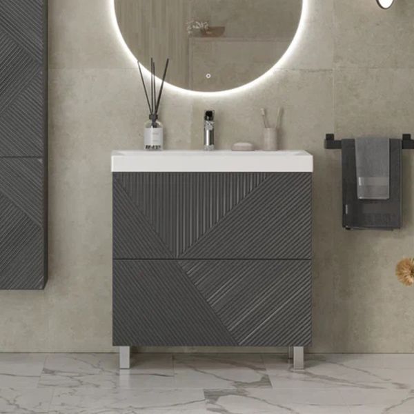 Тумба под раковину напольная Velvex Edge tn.EDG.9696.80.2Y графит, 80 см: 2 выдвижных ящика с механизмом открывания push-to-open.