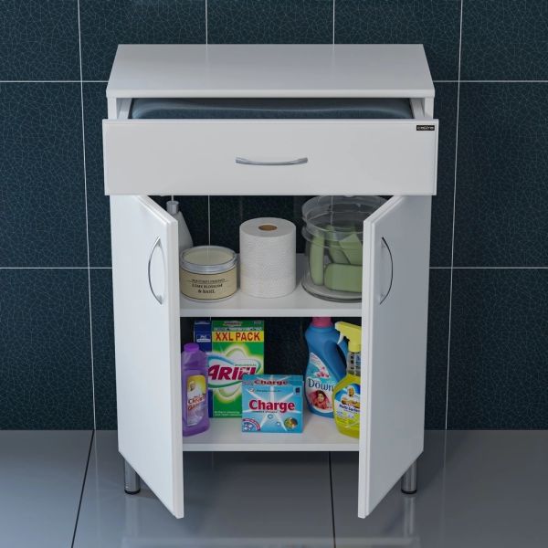 Тумба СанТа отлично подойдет как для просторной ванной комнаты, так и для небольшого помещения. Напольный способ установки производится непосредственно на пол, при этом конструкция максимально устойчива при серьезных физических нагрузках.В производстве используют только качественные влагостойкие материалы (ВЛДСП), в составе которых полностью отсутствуют опасные вещества. Серия отличается превосходным дизайном с соблюдением всех ключевых элементов современного стиля. Основным цветом, в котором выполнена тумба СанТа является белый, гармонирующий с большинством интерьерных решений. Тумба предусматривает удобную и вместительную систему хранения, состоящую из дверей, ящиков. Качественные доводчики позволяют обеспечить мягкое и тихое закрывание.Страной бренда СанТа является Россия, все товары производятся с выполнением соответствующих стандартов качества, что позволяет быть полностью уверенными в долговечности и надежности. Тумба СанТа правильный выбор в современном дизайне ванной, придающий уникальность всему помещению, при этом сохраняя функциональность.