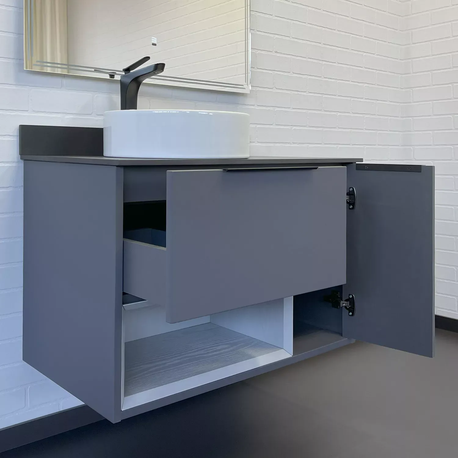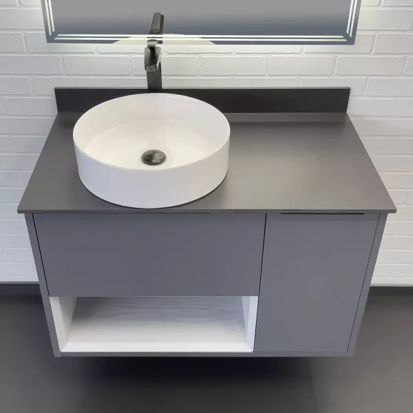 Тумба-умывальник Comforty Джанкой 90 антрацит с черной столешницей и раковиной 9111 купить