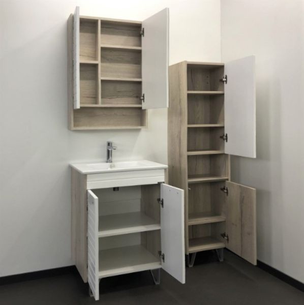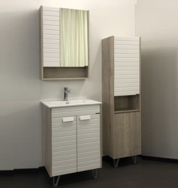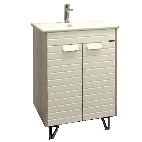 Тумба-умывальник Comforty Клеон 60Н белый/дуб дымчатый с раковиной Quadro 60Тумба с раковиной