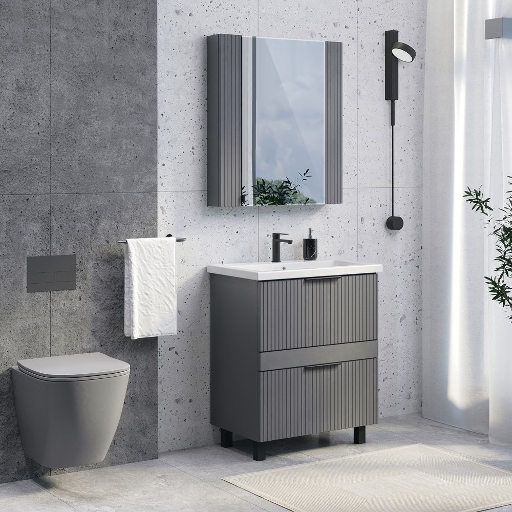 Тумба-умывальник Comforty Лима-70Н2 антрацит с раковиной Como 70 купить