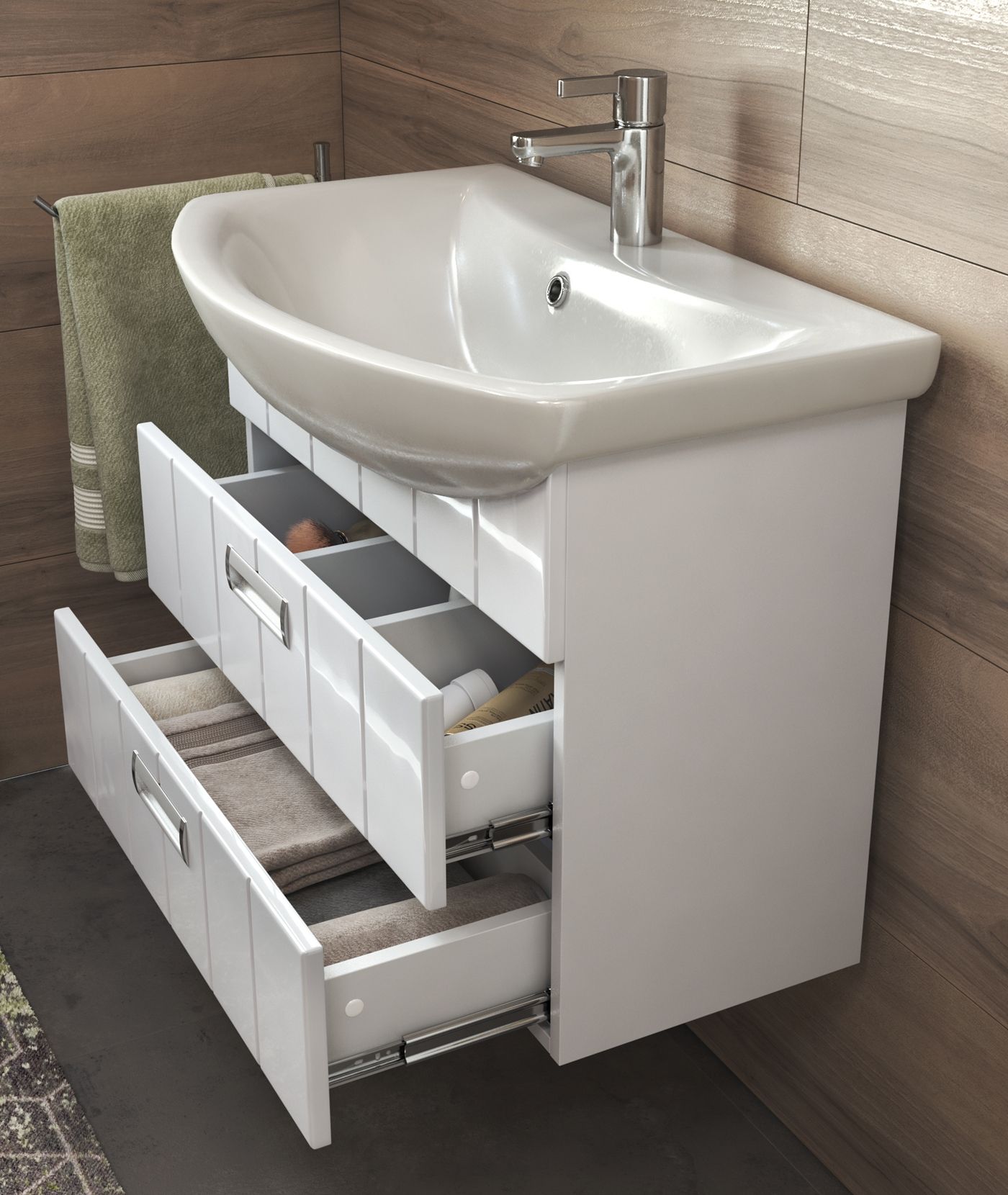 Ящики: направляющие полного выдвижения.Тумба Diana 2-600 подвесная (умывальник Балтика)