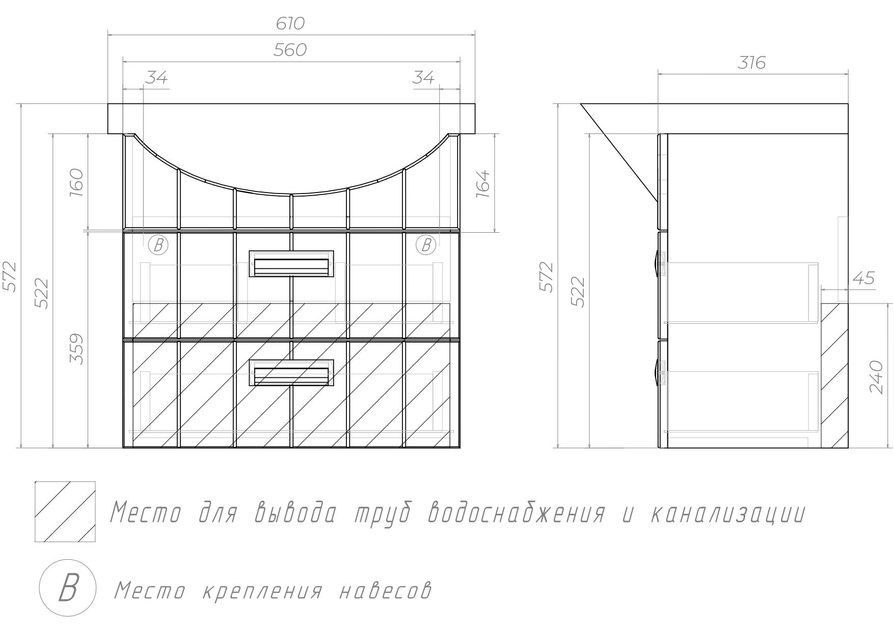 Левое/правое исполнение шкафчика.