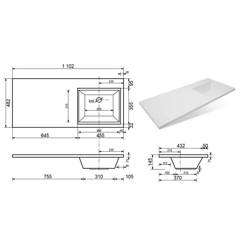 Тип:раковина-столешница