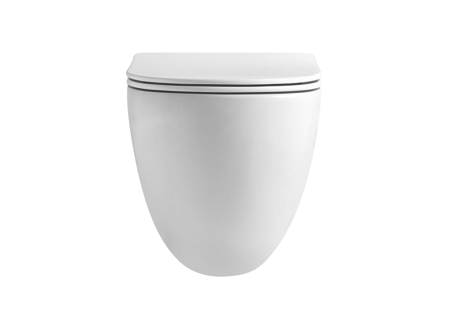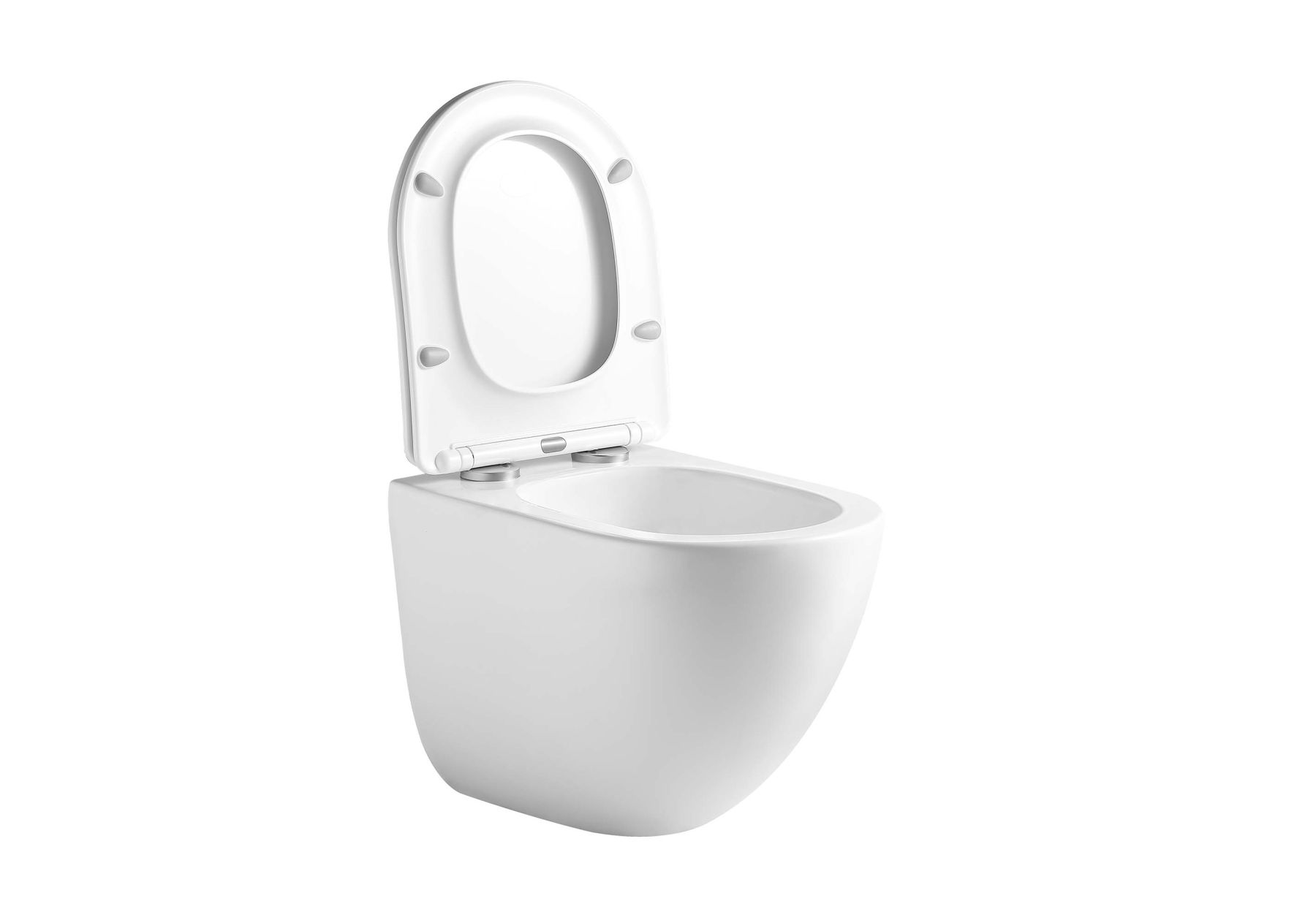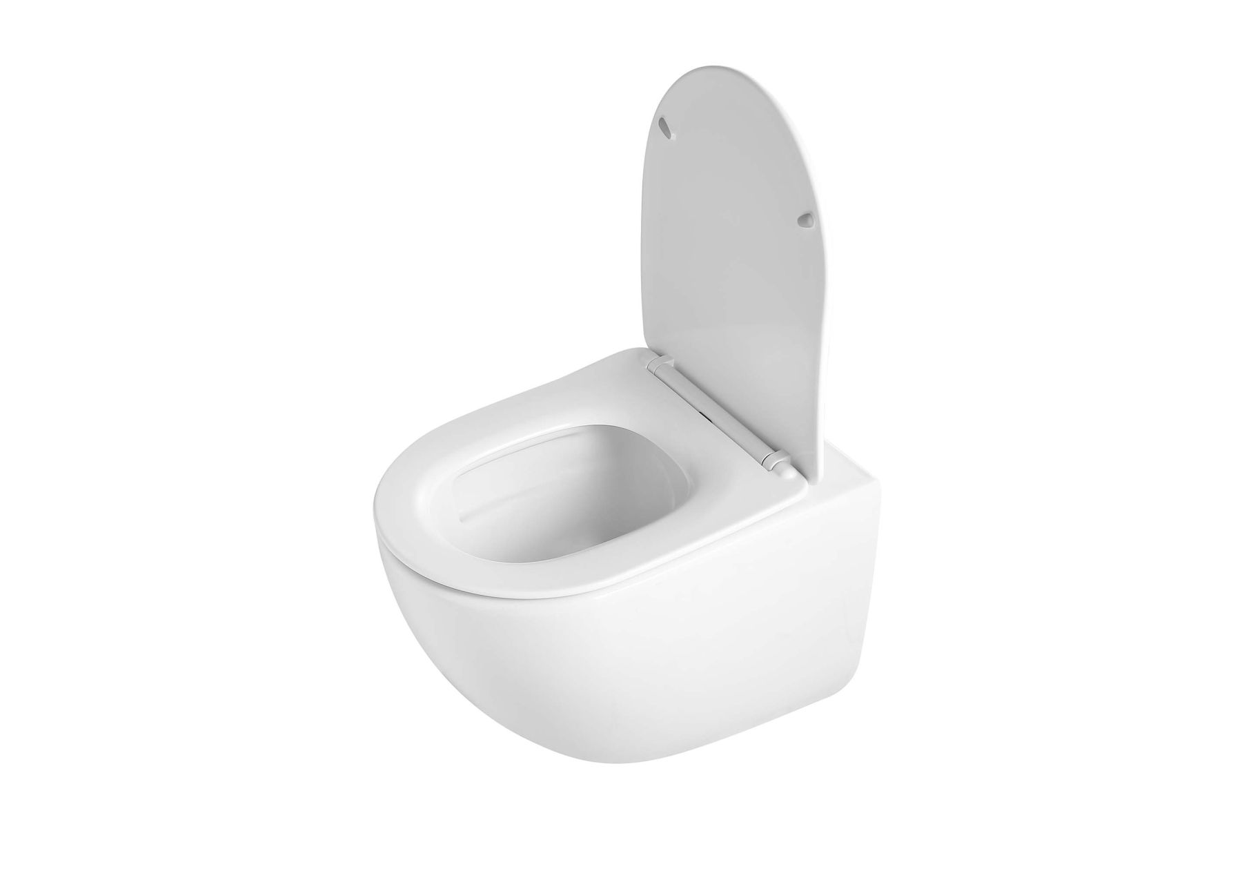 Безободковая конструкция чаши обеспечивает гигиеничность, отсутствие скрытых участков и простоту в уходе. Этот современный унитаз оснащен ультратонким легкосъемным сиденьем из дюропласта, что обеспечивает простоту в уходе и гигиеничность. Система плавного опускания сиденья предотвращает резкие звуки и обеспечивает комфортное использование.