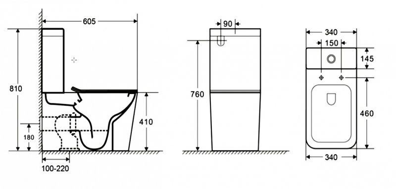 Прилегание унитаза к стене:с отступом