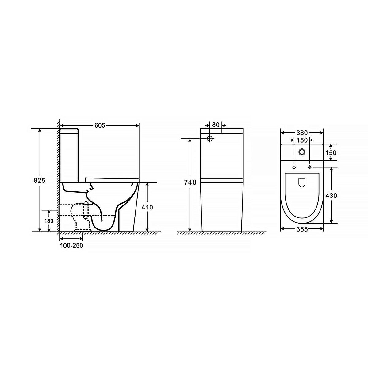 Прилегание унитаза к стене:с отступом