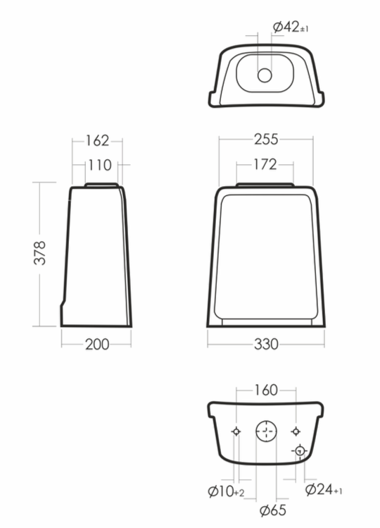 Размеры унитаза-компакта: 350 x 653 x 810