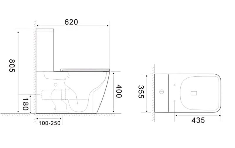 Прилегание унитаза к стене:вплотную