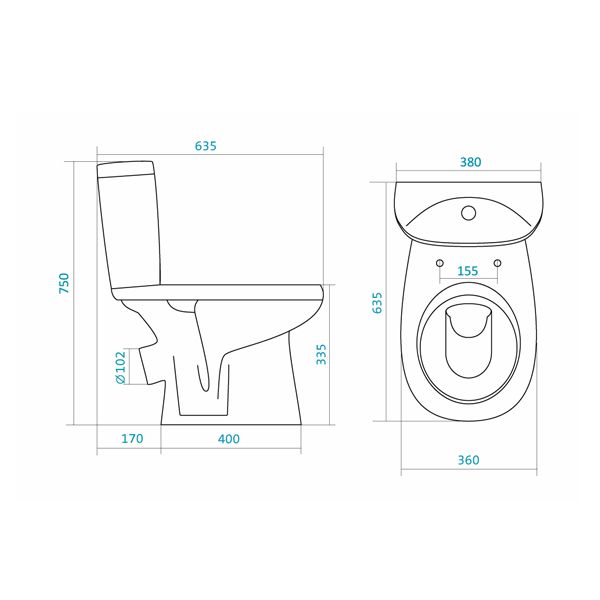 Унитаз напольный Santek - Анимо с сиденьем дюропласт Soft-close, косой выпуск с двухрежимной арматурой.