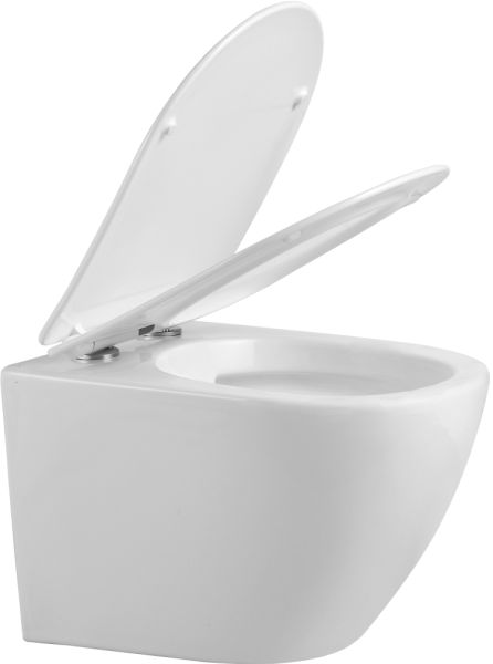 Подвесной безободковый унитаз Orange - функциональное и эргономичное решение для небольшого санузла. Изготовлен из фарфора с непористой структурой, благодаря чему не впитывает неприятные запахи и не меняет цвет. Чаша с антибактериальной пропиткой поверхности не способствуют развитию бактерий, а каскадный слив быстро и эффективно удаляет загрязнения. Унитаз оборудован быстросъемным сиденьем с крышкой из дюропласта, оснащенным механизмом плавного и бесшумного опускания.