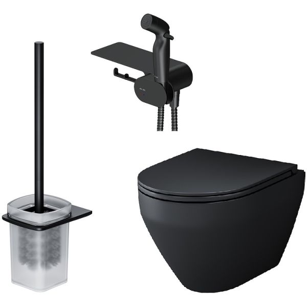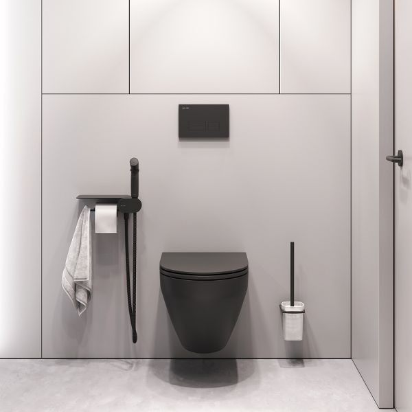 Унитаз подвесной AM.PM Spirit V2.0 FlashClean FlashClean CK70H1103B черныйИнновационное и стильное дизайнерское решение для вашей туалетной комнаты от AM.PM. Полностью готовый к установке комплект: подвесной унитаз FlashClean, гигиенический набор с полкой, стойка с туалетной щеткой. Выверенный геометрический дизайн - идеально ровные поверхности и безупречно четкие грани. Дизайн этого унитаза был отмечен премиями iF Design и Good Design. Теперь и в черном матовом исполнении. Многофункциональный гигиенический набор представляет собой удобную полочку, на которой можно разместить все, что необходимо вам под рукой. На интегрированном держателе можно размещать туалетную бумагу, а на крючке - полотенце. Завершает комплект подвесная стойка с туалетной щеткой в матовом черном цвете. Обтекаемая форма и стильные элементы из ультратонкого сверхпрочного стекла напоминают современные смартфоны внешне и тактильно.