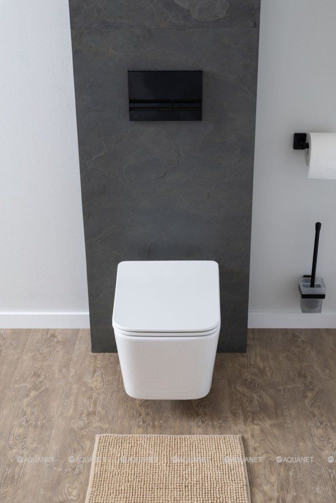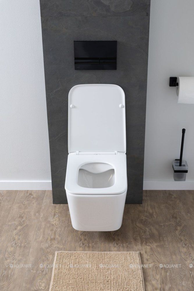 Современный подвесной унитаз Aquanet Rimless Tavr создан для компактных ванных и туалетных комнат благодаря своим габаритам 360х525х290 мм. Изготовлен из белой керамики, а в комплекте идет удобная крышка-сиденье из дюропласта в тон устройству. Подвесная конструкция экономит место, делает пространство более технологичным и комфортным за счет размещения смывного механизма в стене. Снаружи вы устанавливаете аккуратную кнопку смыва с плавным нажатием. Дополнительные функции — режим антивсплеск и безободковое решение. В плане дизайна прямоугольный унитаз будто создан для стиля модерн, лофт, минимализм, хай-тек, эклектики и Скандинавии. Ваша задача — приобрести в дополнение хорошую инсталляцию для смыва, так как в комплекте с унитазом она не продается.