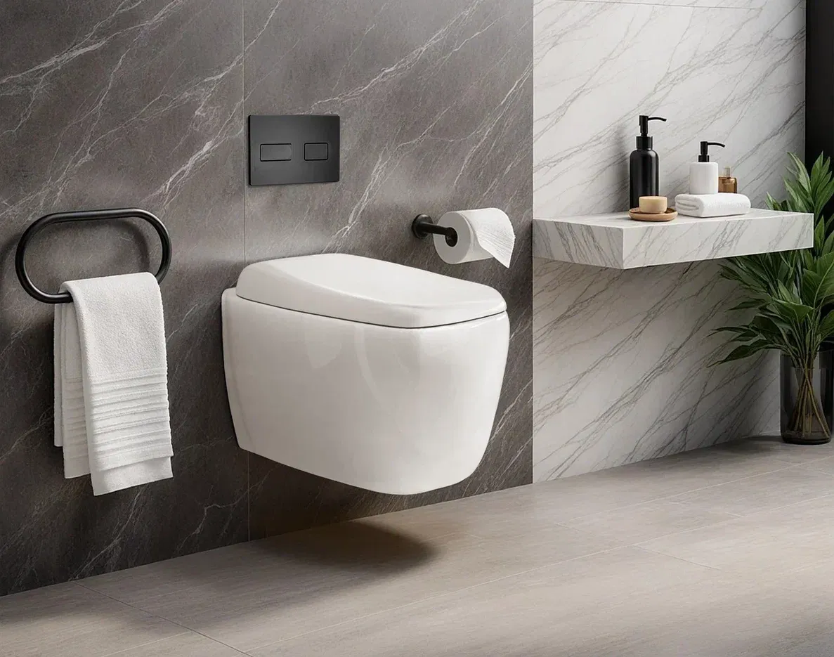 Использование нижней подводки воды позволило добиться практически бесшумного наполнения бачка водой. А сами шланги скрыты от посторонних глаз удобным дизайном чаши унитаза.