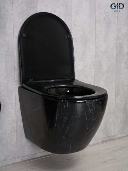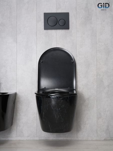 Convexo — коллекция округлых унитазов и биде, идеально подходящих для современных интерьеров. Испанское качество и соответствие европейским нормам — основные черты серии. Подвесной безободковый унитаз GiD Bs2198 - модель с горизонтальным выпуском выполнена из мелкопористой керамики в черном глянцевом цвете имитирующим неповторимые узоры камня. Оснащена быстросъёмным сиденьем из дюропласта с функцией микролифта, обеспечивающей плавное и бесшумное опускание крышки. Благодаря антигрязевому покрытию и воронкообразной овальной чаше унитаз обеспечивает высокий уровень гигиены и легкость ухода. Комплект: подвесной унитаз GiD Bs2198 с креплениями для скрытого монтажа; сиденье с креплениями.