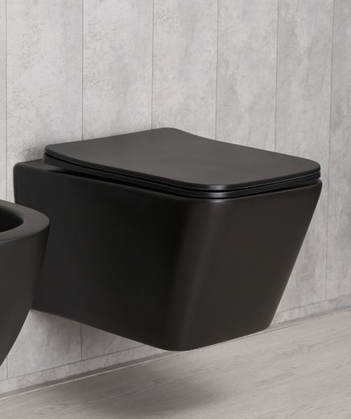 Серия Cuadrado — образец современного дизайна и испанского качества. Соответствие европейским стандартам гарантирует их долговечность. Подвесной безободковый унитаз GiD Tr2144Bm - это модель с горизонтальным выпуском, выполненная из мелкопористой керамики в черном матовом цвете. Оснащена быстросъёмным сиденьем из дюропласта с функцией микролифта, обеспечивающей плавное и бесшумное опускание крышки. Благодаря антигрязевому покрытию и воронкообразной квадратной чаше унитаз обеспечивает высокий уровень гигиены и легкость ухода. Комплект: подвесной унитаз GiD Tr2144Bm с креплениями для скрытого монтажа; сиденье с креплениями.