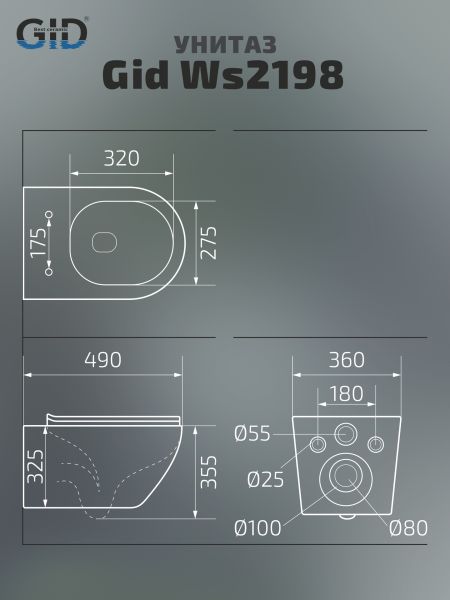Convexo — коллекция округлых унитазов и биде, идеально подходящих для современных интерьеров. Испанское качество и соответствие европейским нормам — основные черты серии. Подвесной безободковый унитаз GiD Ws2198 (СС) - модель с горизонтальным выпуском выполнена из мелкопористой керамики в белом глянцевом цвете, имитирующем неповторимые узоры камня. Оснащена быстросъёмным сиденьем из дюропласта с функцией микролифта, обеспечивающей плавное и бесшумное опускание крышки. Благодаря антигрязевому покрытию и воронкообразной овальной чаше унитаз обеспечивает высокий уровень гигиены и легкость ухода. Комплект: подвесной унитаз GiD Ws2198 (СС) с креплениями для скрытого монтажа; сиденье с креплениями.