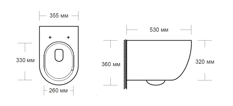 • Прилегание унитаза к стене: