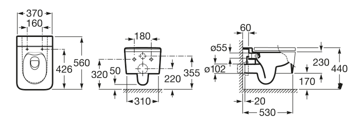 Прилегание унитаза к стене:вплотную