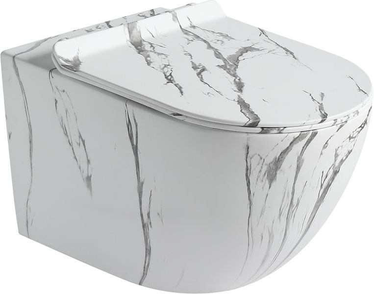 Подвесной унитаз SantiLine безободковый, сиденье микролифт, цвет под мрамор матовый, SL-5002MM