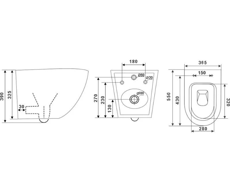 - Форма воронки унитаза предотвращает образование брызг