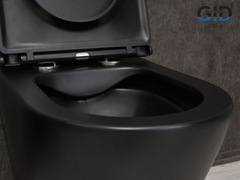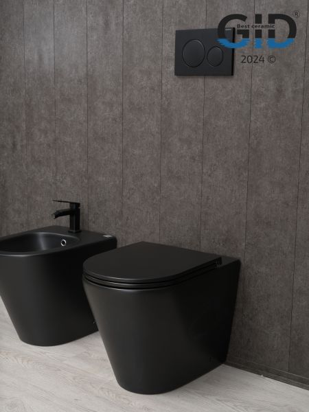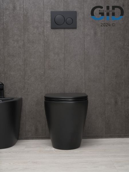 Cortado — стильная коллекция округлых унитазов и биде со скосом к низу. Испанское качество гарантирует надежность, а европейская сертификация подтверждает их качество. Приставной безободковый унитаз GiD TRS-263BM — стильная напольная модель с горизонтальным выпуском предназначена для установки со скрытым бачком. Выполнен из высококачественной керамики в черном цвете с матовым покрытием, что обеспечивает долговечность и уникальный внешний вид. Крышка унитаза изготовлена из прочного дюропласта и оснащена функцией микролифта, которая обеспечивает плавное и бесшумное опускание. Благодаря антигрязевому покрытию и воронкообразной овальной чаше унитаз обеспечивает высокий уровень гигиены и легкость ухода.
