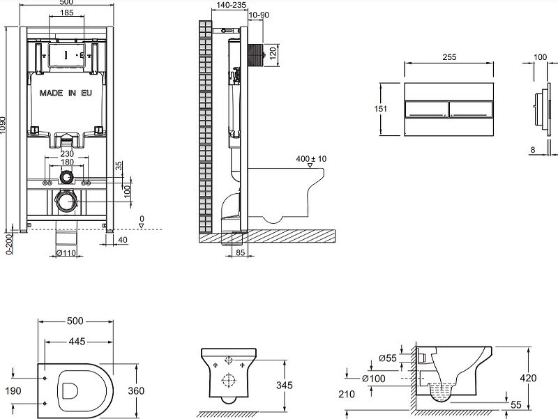 Унитаз с инсталляцией Jacob Delafon Elite E21742RU-00 с сиденьем Микролифт и клавишей смыва купить