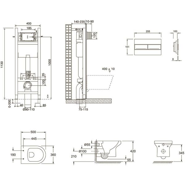 Инсталляция Jacob Delafon 40 см, с безободковым унитазом Elite EDX114RU-00, сиденье тонкое микролифт, клавиша белая, комплект E21755RU-00 (E33131RU+EDX114RU+E4316-00)Состав комплекта:Инсталляция для унитаза Jacob Delafon 40 см, E33131RU-NF