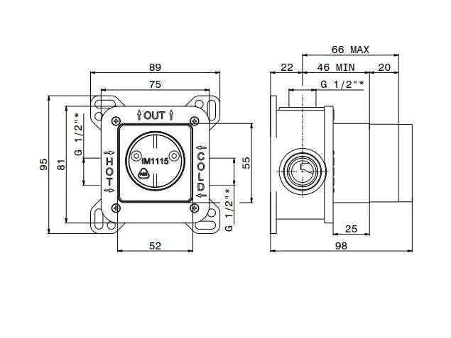 10841KM.00.000 Универсальная внутренняя часть для механического смесителя на один поток для душа