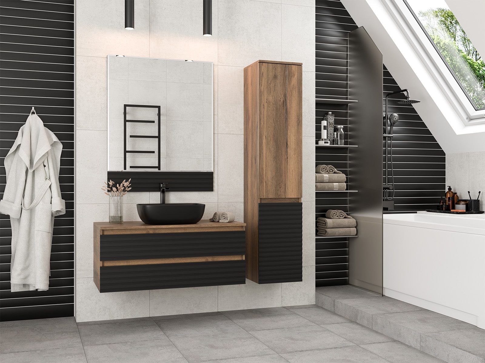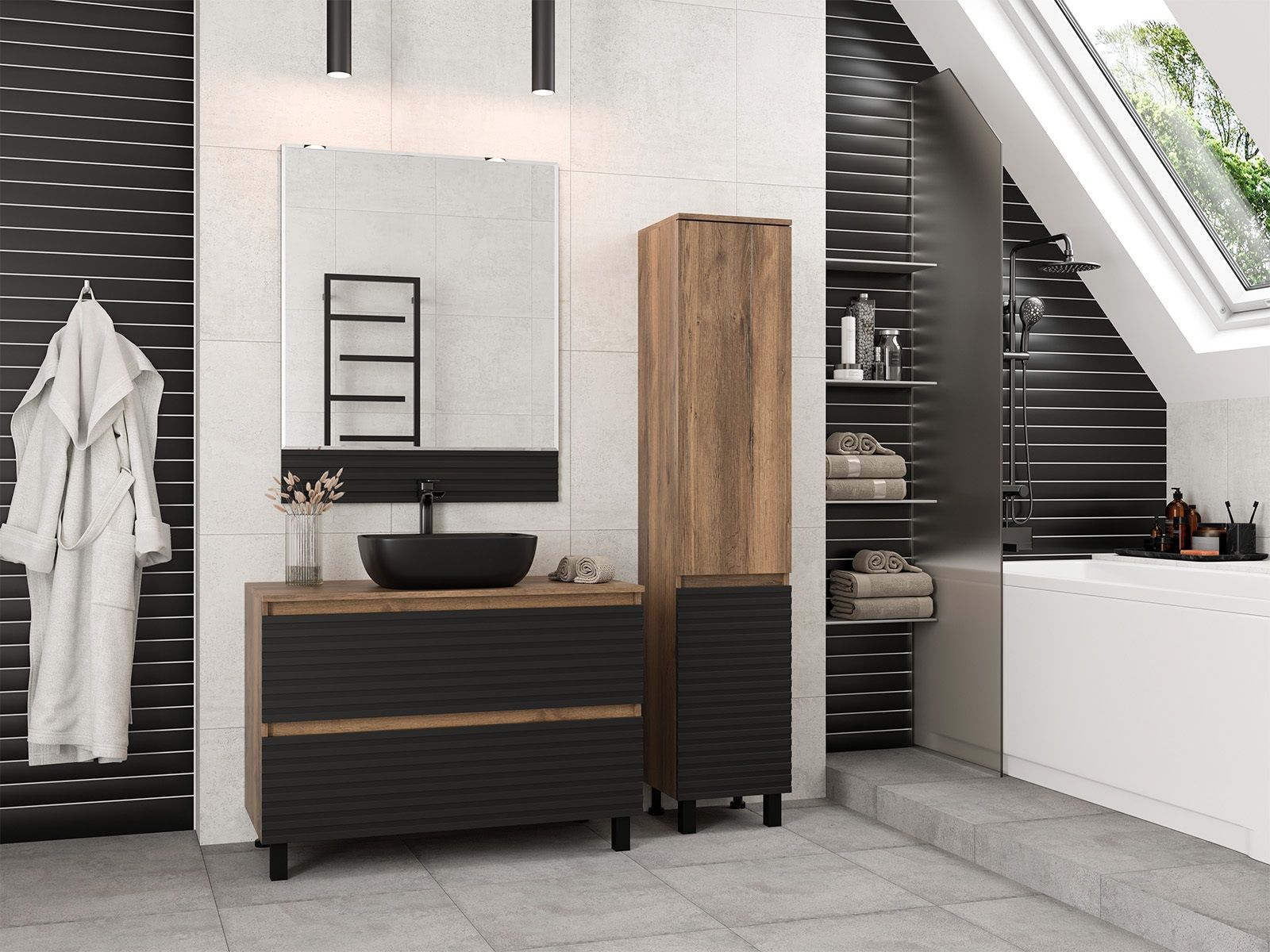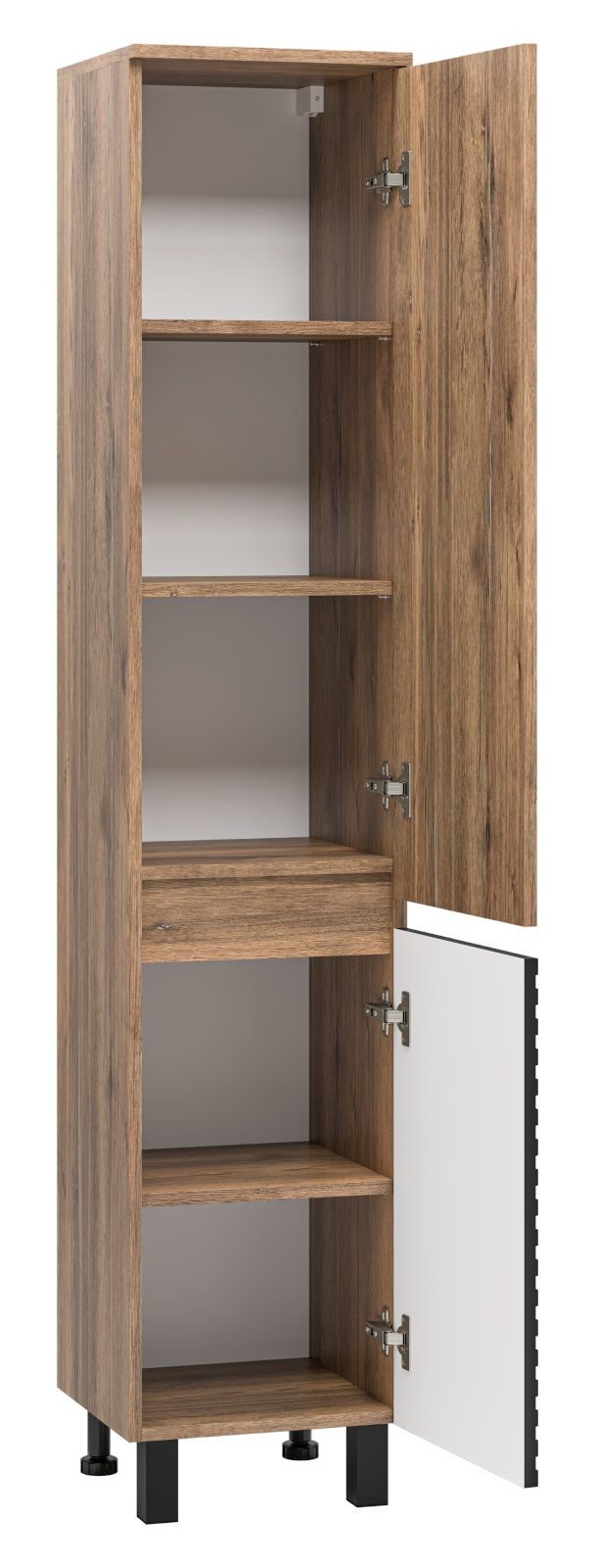 Шкаф-пенал для ванной комнаты – это стильное решение, которое гармонично вписывается в современный интерьер. Его элегантные линии и аккуратные формы создают атмосферу чистоты и порядка, что особенно важно в таком интимном пространстве. Изготовленный из качественных влагостойких материалов, этот шкаф обеспечивает долговечность и надежность, даже в условиях повышенной влажности.Основное преимущество шкаф-пенала заключается в его вместительности. Удобные полки и ящики позволяют организовать пространство и разместить все необходимое: от косметики до бытовых принадлежностей. Каждая деталь продумана для удобства использования, что делает утренние и вечерние ритуалы более приятными.Будь то строгий минимализм или уютный скандинавский стиль, шкаф-пенал станет акцентом, который подчеркивает индивидуальность вашего пространства. Не упустите возможность преобразить свою ванную комнату, добавив в нее этот элегантный и практичный элемент.