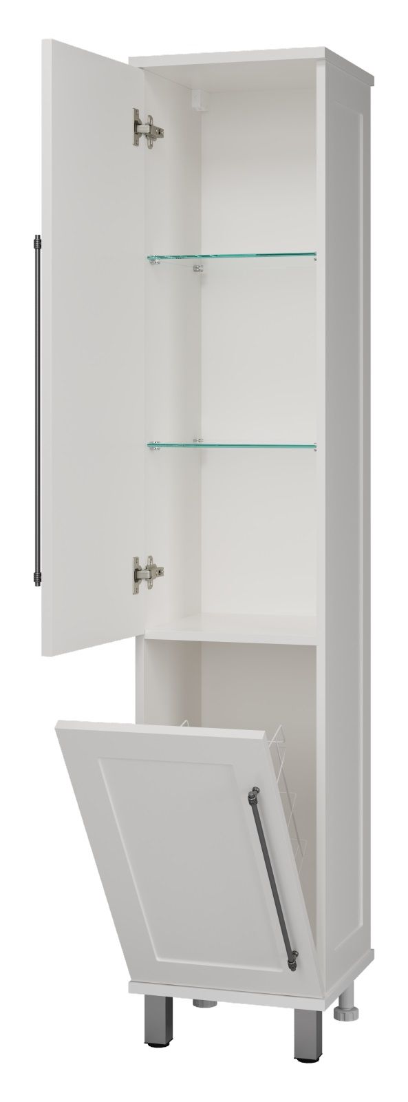Универсальный шкаф - пенал Misty Марта 35см левый с бельевой корзиной белый купить