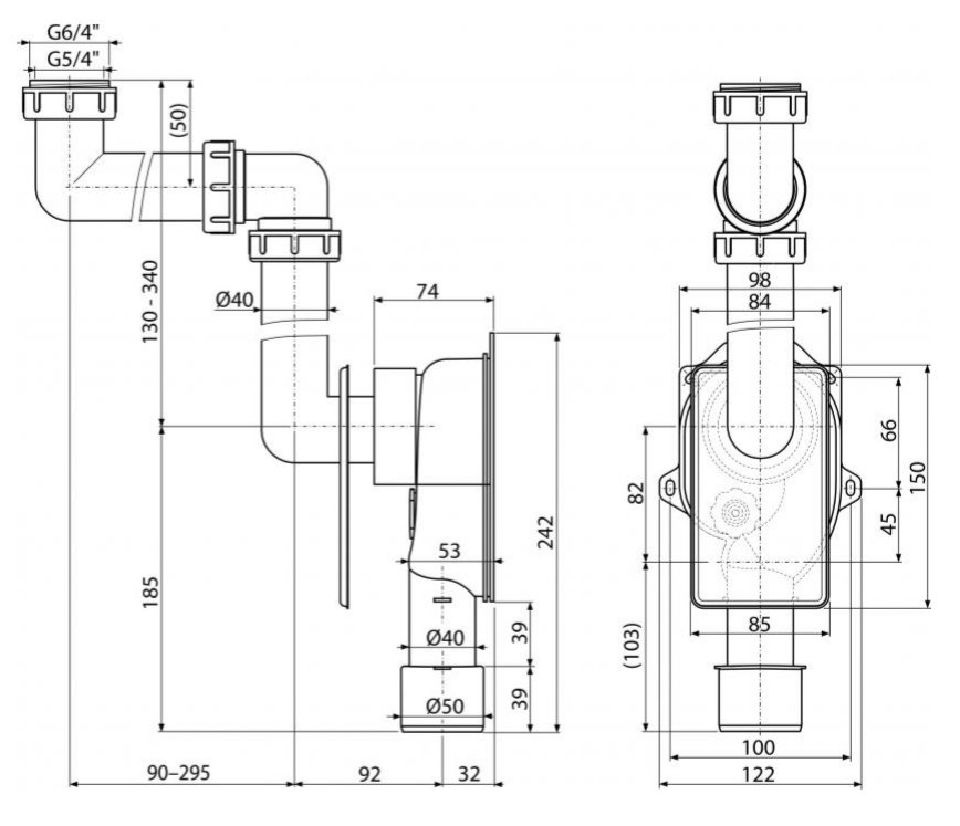 Универсальный сифон под штукатурку AlcaPlast экономящий пространство A873 купить