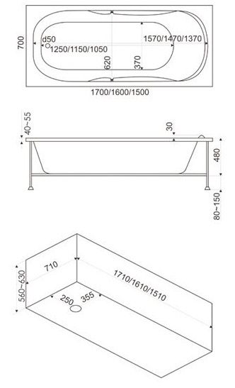 Ширина:700 ммВысота:665 ммГлубина:480 ммДлина:1700 ммЦвет:БелыйМатериал:Литьевой акрил-