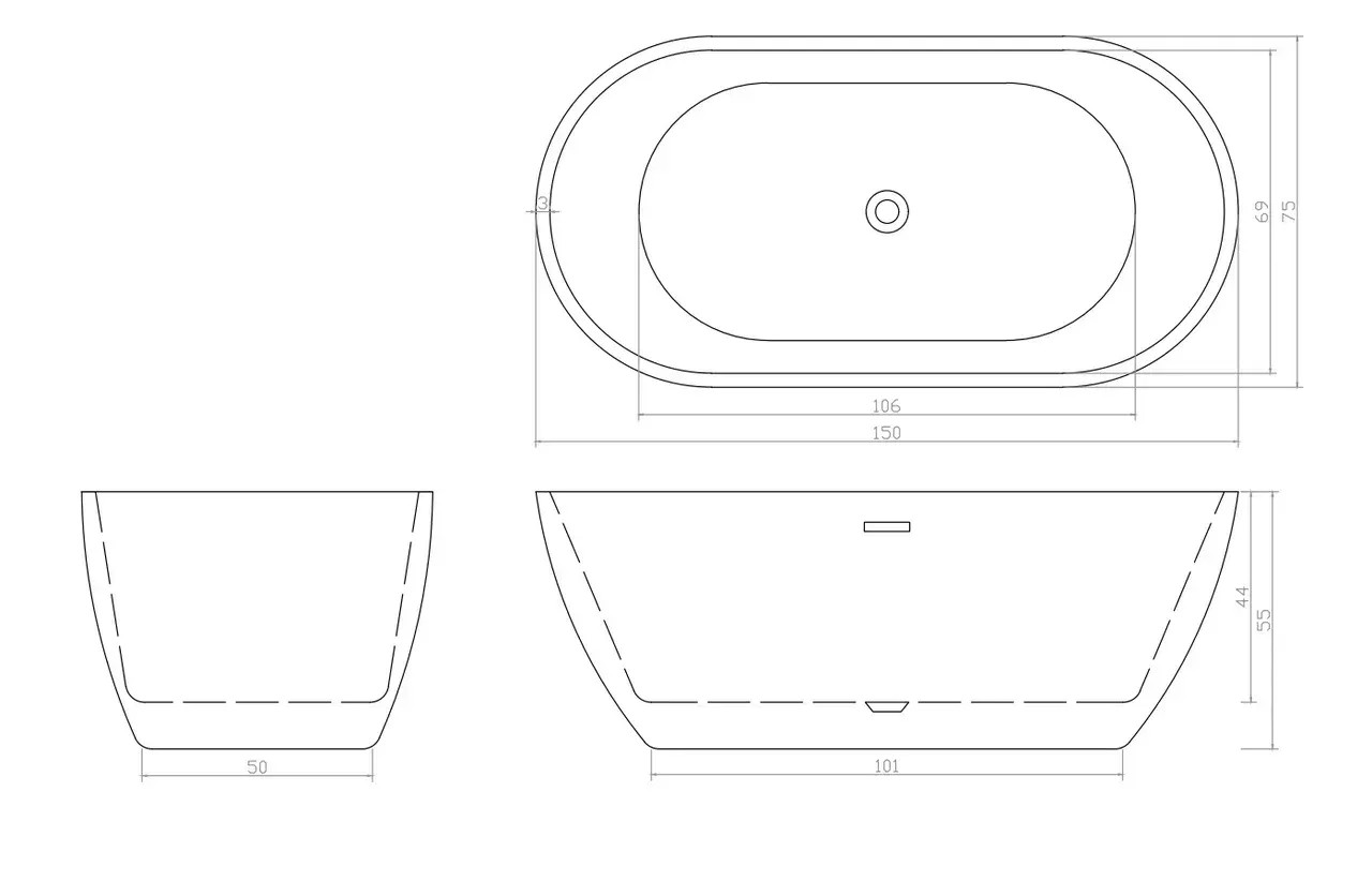 Стандартные размеры, см:150x75
