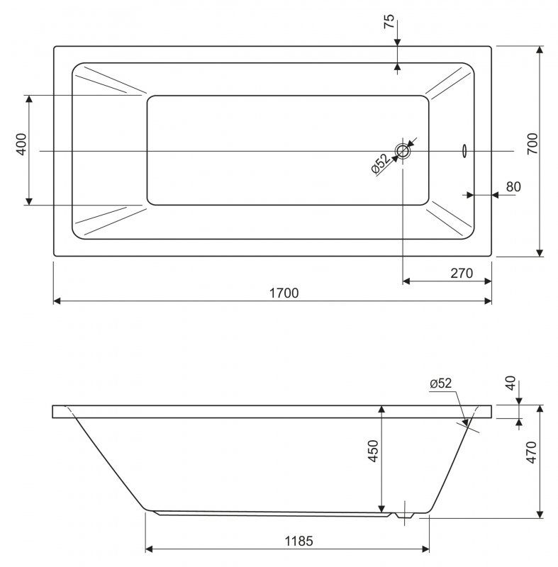 Ванна акриловая Cezares PLANE SOLO-170-70-45-W37 купить