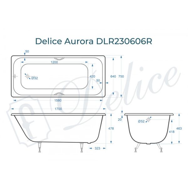 Ванна чугунная Delice Aurora DLR230606 170x75 купить