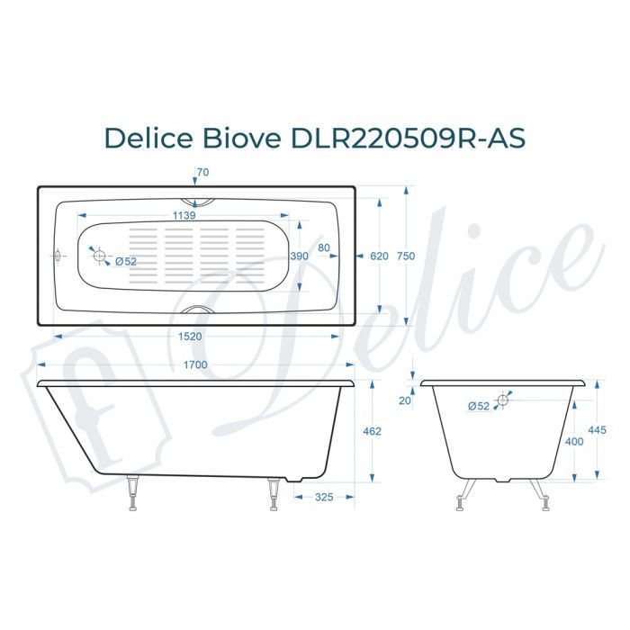 Ванна чугунная Delice Biove DLR220509R-AS 170x75 с ручками купить