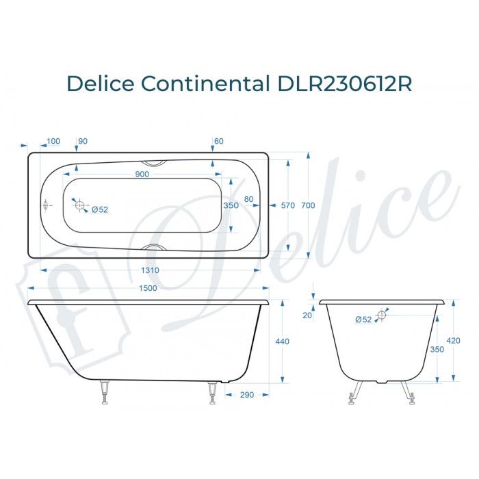 Ванна чугунная Delice Continental DLR230612R 150x70 с отверстиями под ручки Ванна чугунная Delice Continental DLR230612R 150x70 с отверстиями под ручки Казань 53000.00 {old_price} Delice