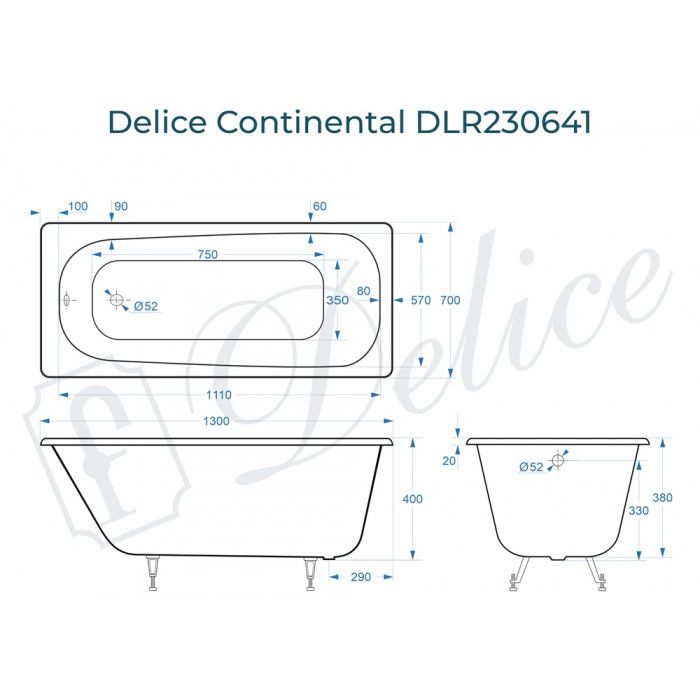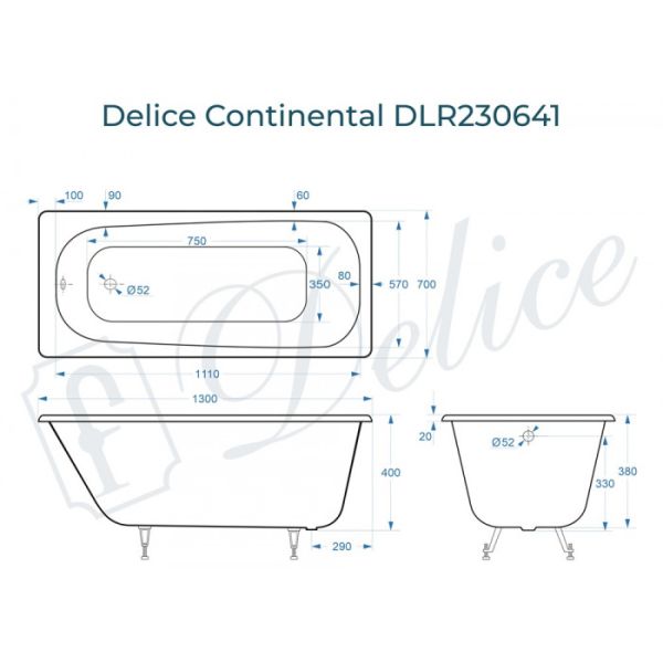 Delice Continental 130х70 - это уютная стильная модель чугунной ванны в мини-размере для вашего дома. Дизайн ванны спроектирован на основе классической формы с учетом современных тенденций в сантехнике. Внутреннее пространство чаши имеет увеличенный объем, анатомическую форму и широкое дно для максимального комфорта при эксплуатации. Continental 130х70 - это отличное решение для небольших ванных комнат.