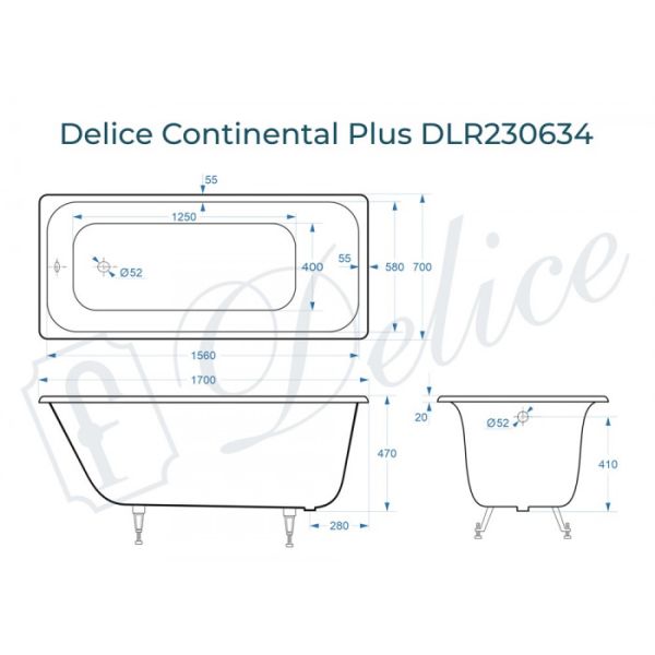 Ванна чугунная Delice Continental PLUS DLR230634 170х70 см купить