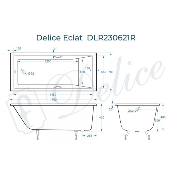 Ванна чугунная Delice Eclat DLR230621R 170х70 с отверстиями под ручки Ванна чугунная Delice Eclat DLR230621R 170х70 с отверстиями под ручки Казань 96000.00 {old_price} Delice