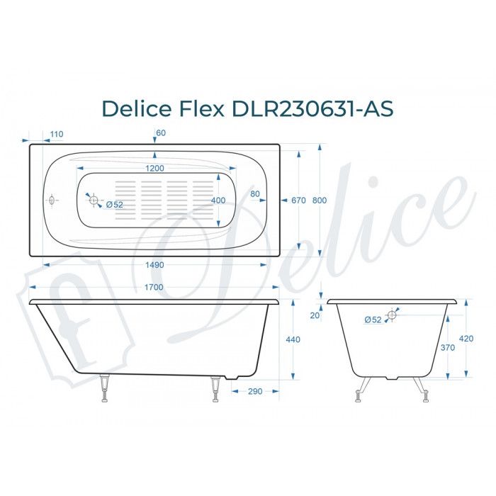 Ванна чугунная Delice Flex 170х80 с антискользящим покрытием купить