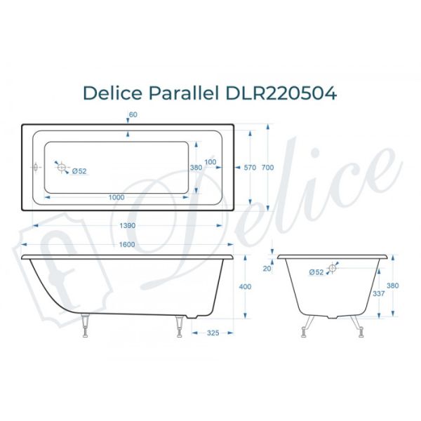 Ванна чугунная Delice Parallel DLR 220504 160x70см белый купить