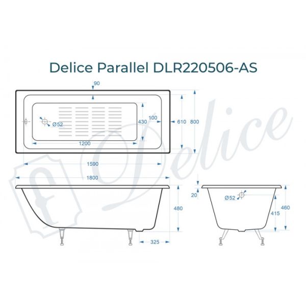 Ванна чугунная Delice Parallel DLR220506-AS 180x80 купить
