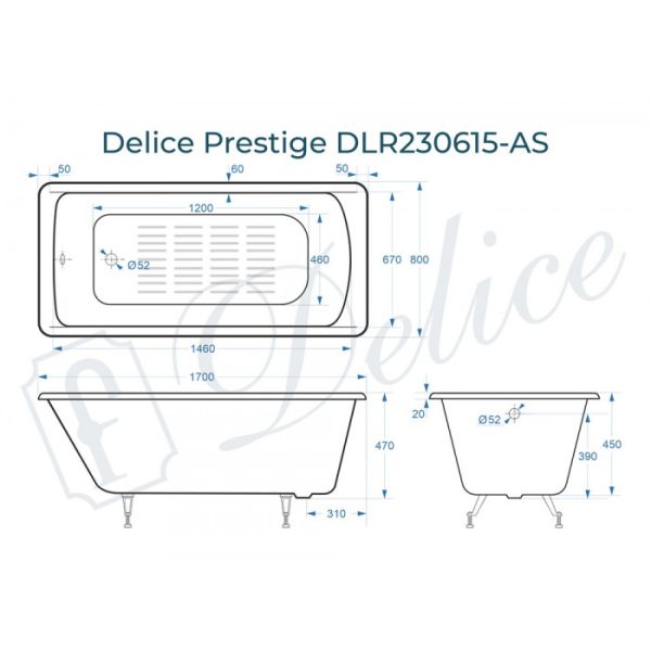 Ванна чугунная Delice Prestige DLR230615-AS 170х80 с антискользящим покрытием купить