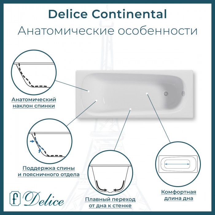 Чугунная ванна Delice - это отличный способ отвлечься от повседневных проблем и избавиться от стресса во время принятия водных процедур. Основным преимуществом ванны из чугуна является простота в уходе и устойчивость эмали ванны перед большинством механических повреждений.Прямоугольная форма ванны идеально подойдет к любому интерьерному решению. Пристенный монтаж - наиболее традиционный вид установки. Оптимальная глубина составляет 46,2 см, что позволяет принимать ванну с максимальным комфортом. Ванна Delice выполнена со строгим соблюдением всех актуальных элементов современного стиля. Ванны Delice производятся с исключительными стандартами качества, по сертифицированным технологиям, с использованием надежных безвредных материалов. Чугунна ванна Delice сделает любое дизайнерское решение не только практичным в плане использования, но и стильным с точки зрения эстетики.