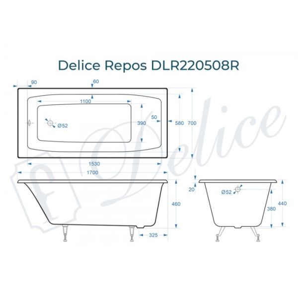 Ванна чугунная Delice Repos DLR 220508 170x70см белый купить