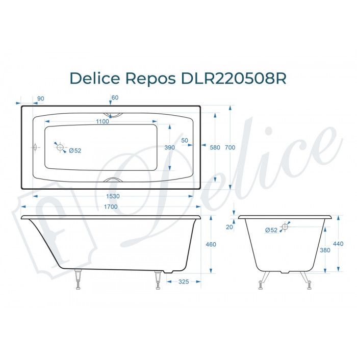Ванна чугунная Delice Repos DLR 220508R 170x70см белый купить